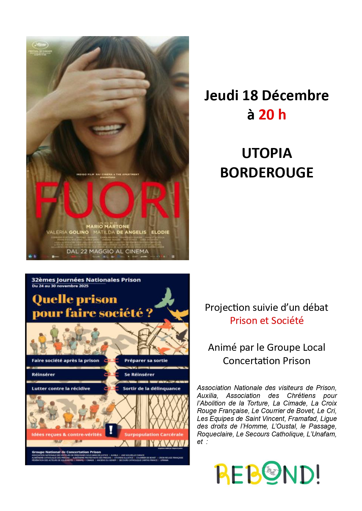 Dans le cadre des Journées Nationales Prisons (JNP) le Groupe Local Concertation Prison (GLCP) de Toulouse organise un ciné-débat autour du film franco-italien "Fuori".